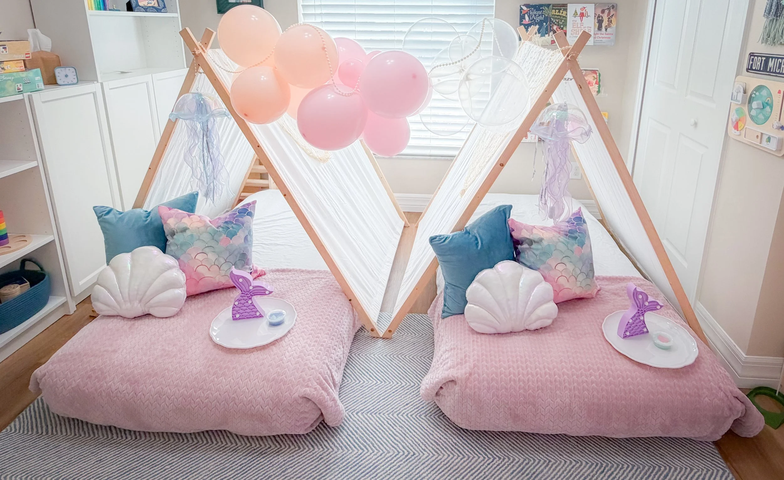 Every detail is carefully coordinated in soft pastel, ocean-inspired tones to create a cohesive and calming lagoon vibe that’s perfect for a magical night in.